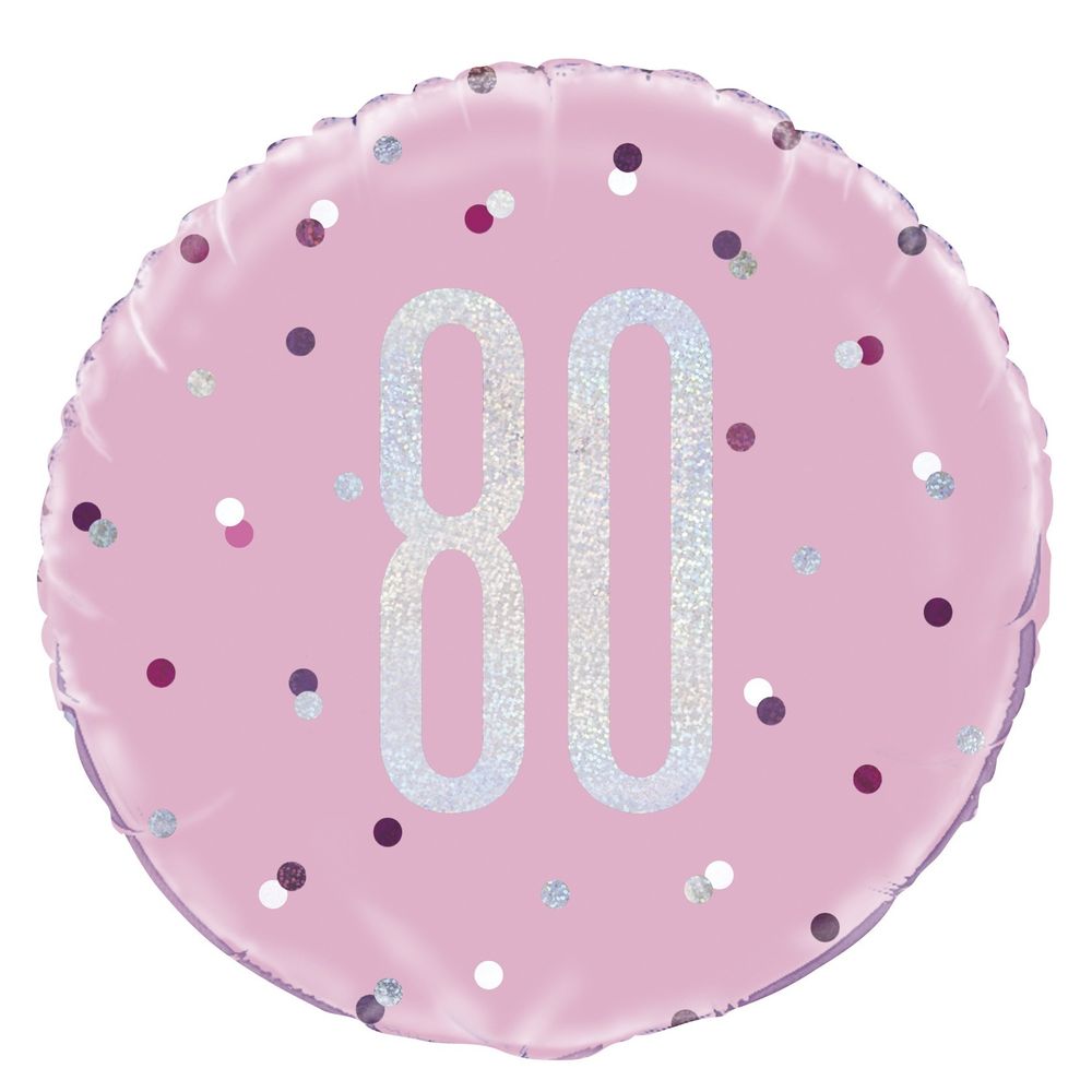 This pink and silver 80th birthday balloon will definitely catch the eye of the birthday boy or girl.