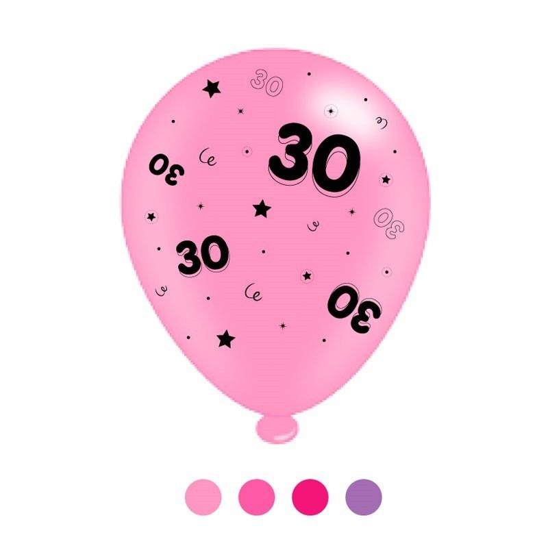 Celebrate a 30th birthday milestone with this pack of latex balloons in a mix of pink and purple tones. Each pack contains 8 balloons in four shade - ideal for adding some variety to the decor of the special event!