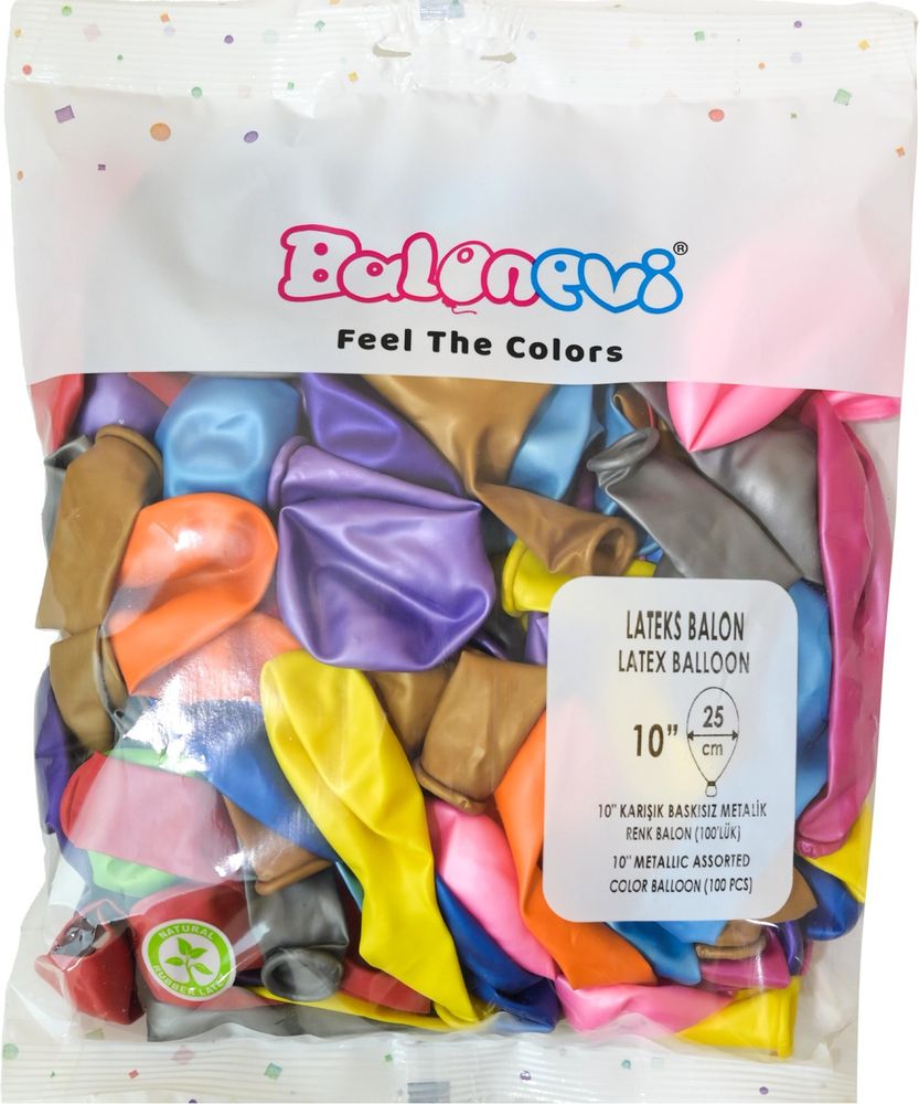 Metallic Assorted Latex Balloons - 10 inch (Pack of 100)