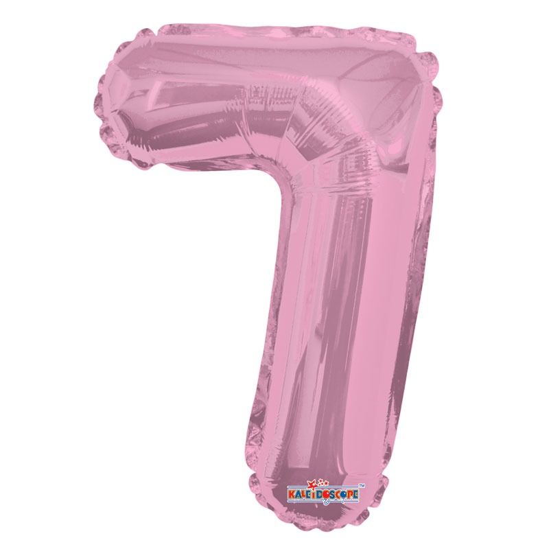 A 14 Inch light pink balloon in the shape of 7.