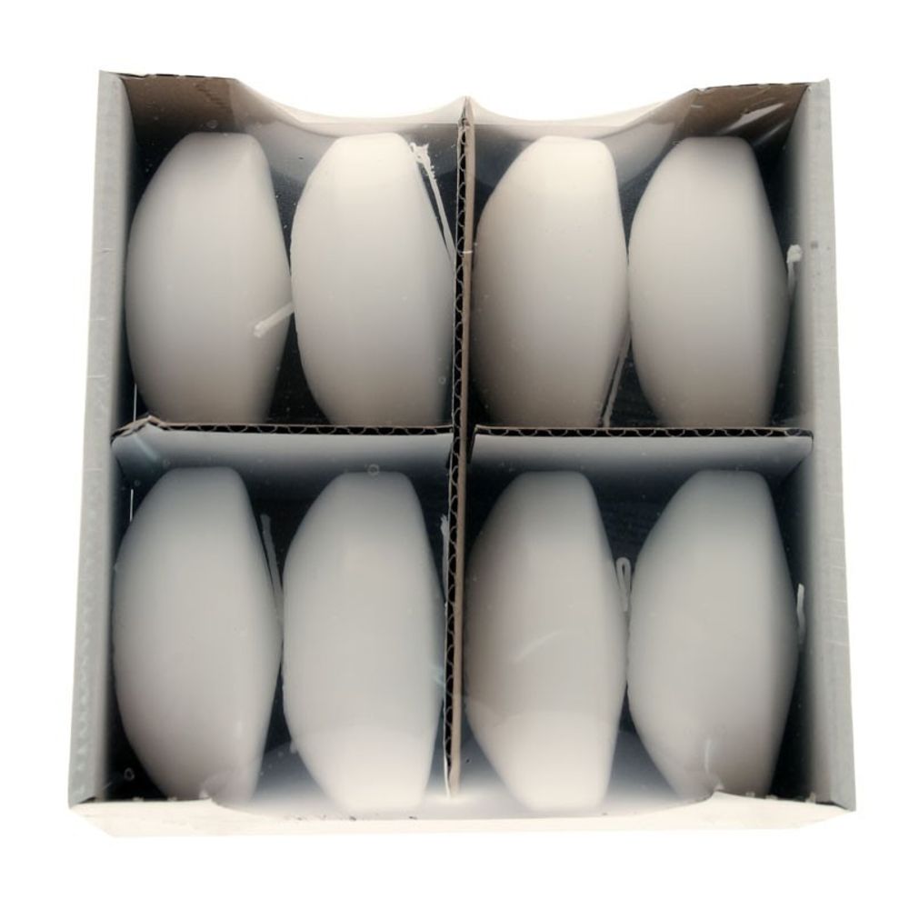 A set of 8 White floating candles.