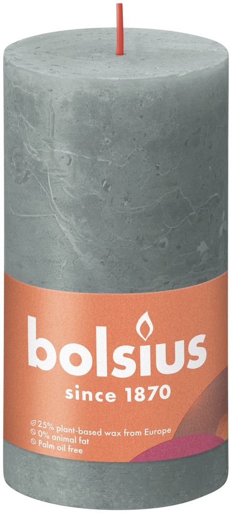 Make every moment a special one! The natural light of candles brings a unique warmth and ambience into your home and makes it cosy. Bolsius's rustic pillar candle coming in the eucalyptus green tone boasts a full 13cm in height and burns for a good 60 hours. The mark of a quality candle is its long burning time and its ability to maintain its shape while burning. Bolsius's rustic candle doesn't smoke or drip and has a nice, rustic finish. Made with love for people and planet. With natural, vegan wax from Europe and zero palm oil. The cotton wick is weaved in such a way that your flame remains stable. In that way no black smoke, soot deposits or smoke arises whilst burning.