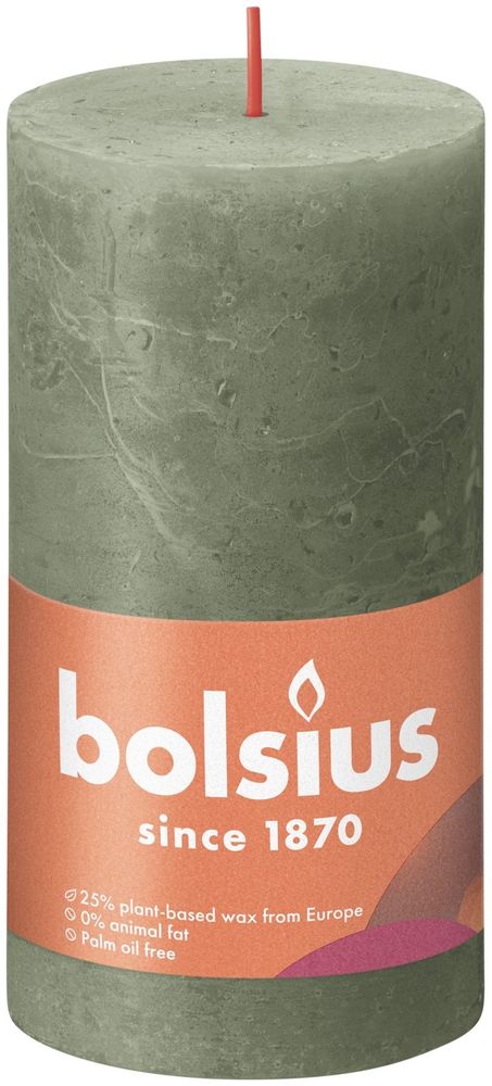 Make every moment a special one! The natural light of candles brings a unique warmth and ambience into your home and makes it cosy. Bolsius's rustic pillar candle coming in the olive green tone Fresh Olive boasts a full 13cm in height and burns for a good 60 hours.
