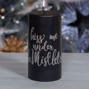 Kiss Me Under the Mistletoe Pillar Candle 6\"