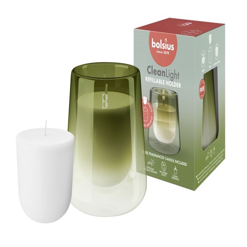 Green Glass Bolsius Clean Light Starter Kit - Gardenia & Fig