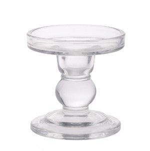 Clear chunky glass candle holder to hold pillar candles.