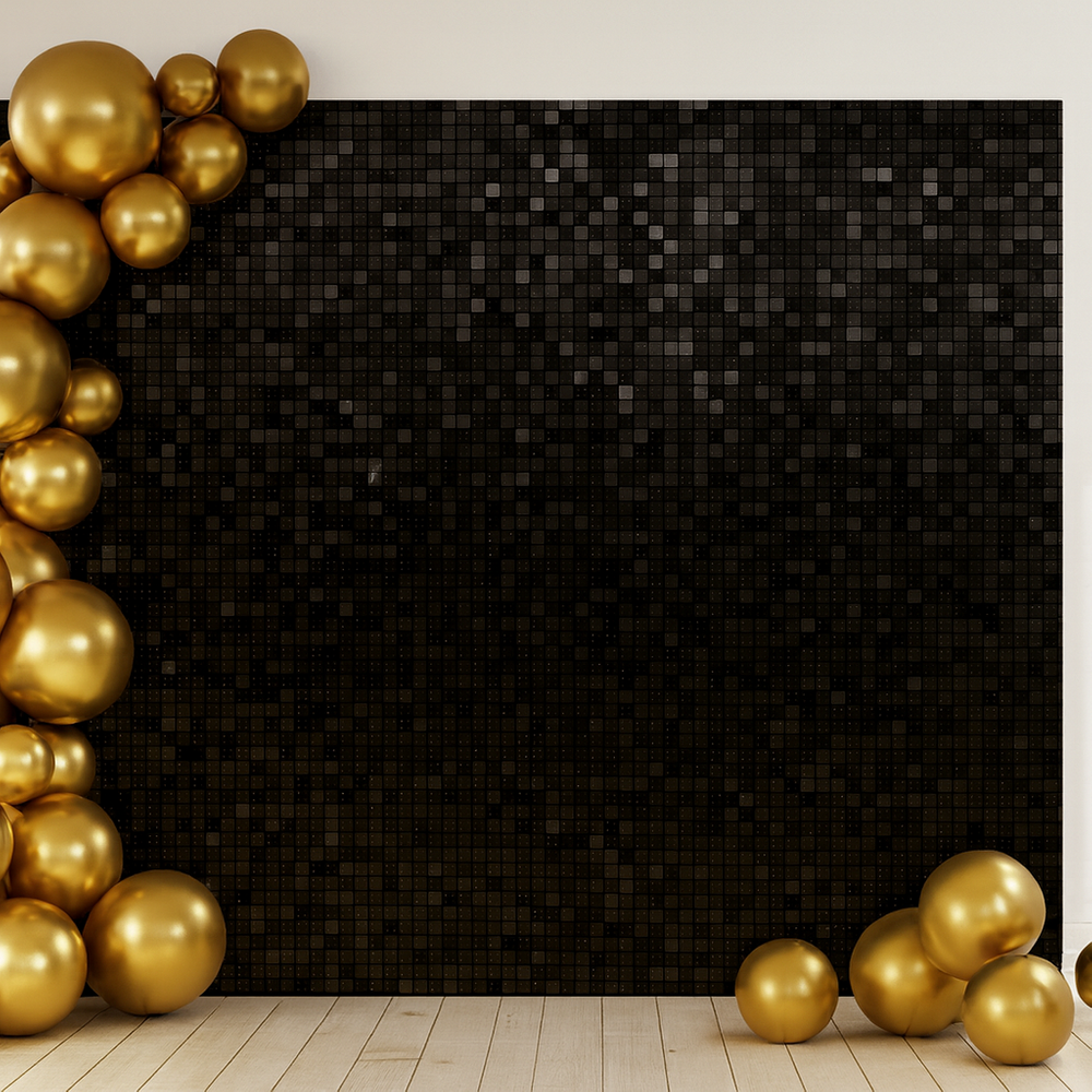 Elevate your event decor with our Black Sequin Wall Panel, designed to help you create a dazzling full size sequin backdrop with ease. Each panel features high-quality, reflective black sequins securely attached to durable backing tiles, producing a rich, shimmering surface that catches the light beautifully.