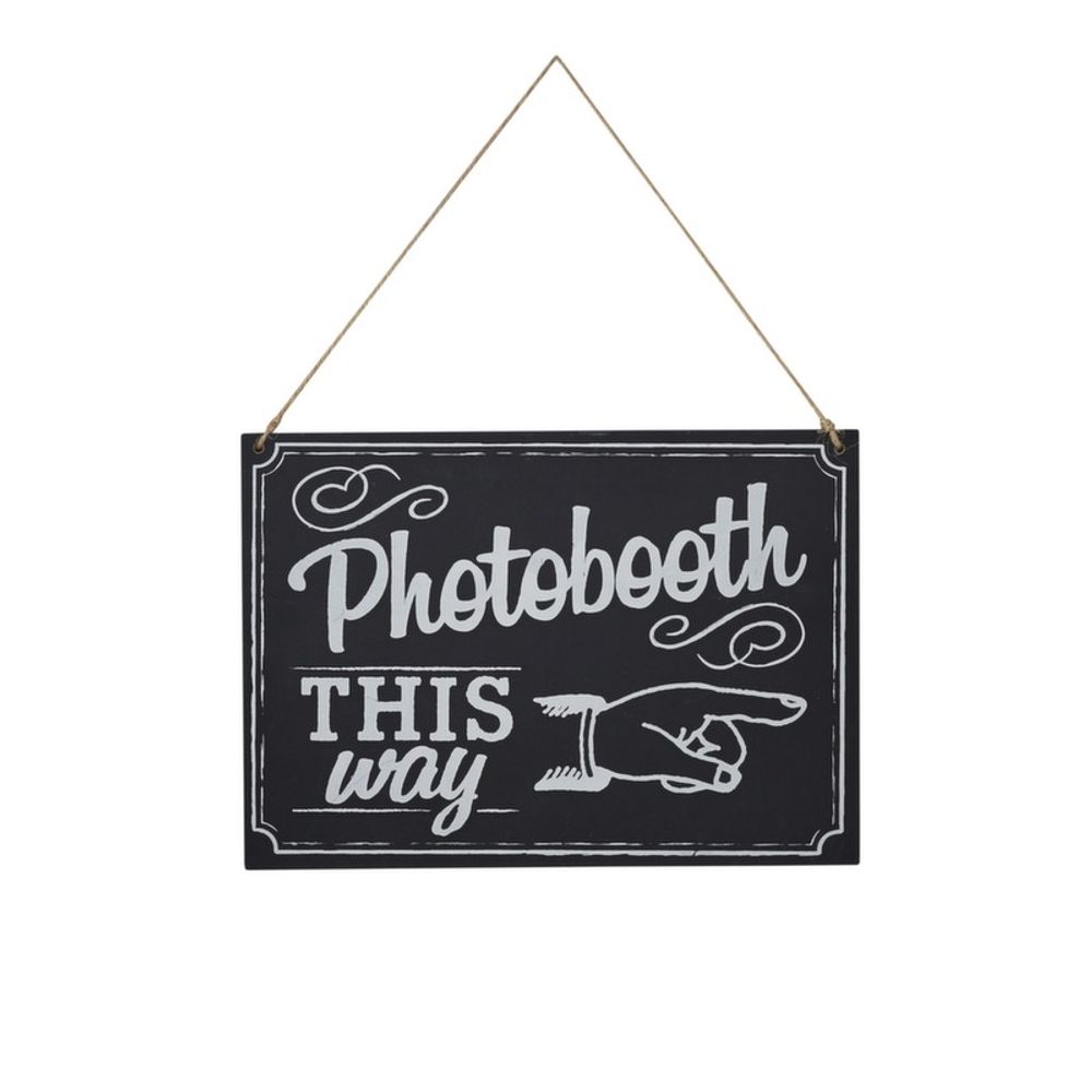 Printed in chalkboard style black and white with the text "Photobooth this way"