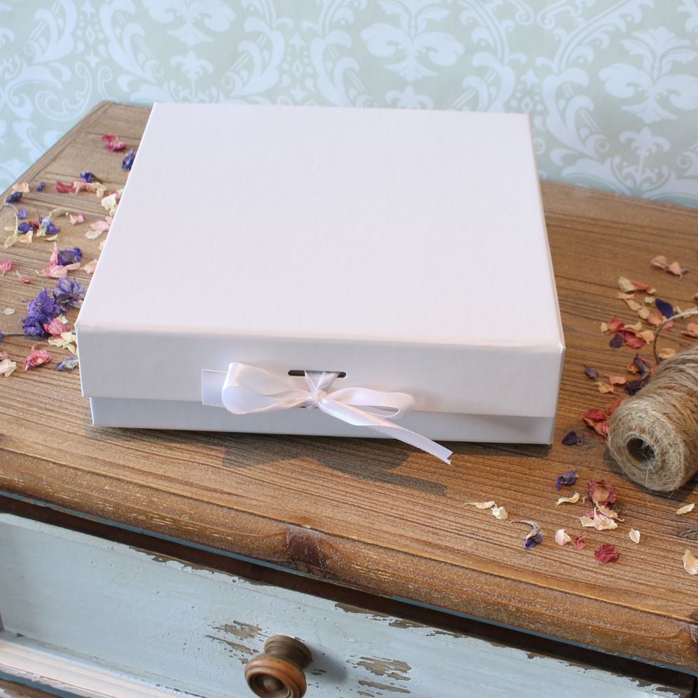 Each box's lid is secured with hidden magnets in the lid's flap making it snap quite easily into place and we even provide white ribbon and ribbon holes for extra decorations.
