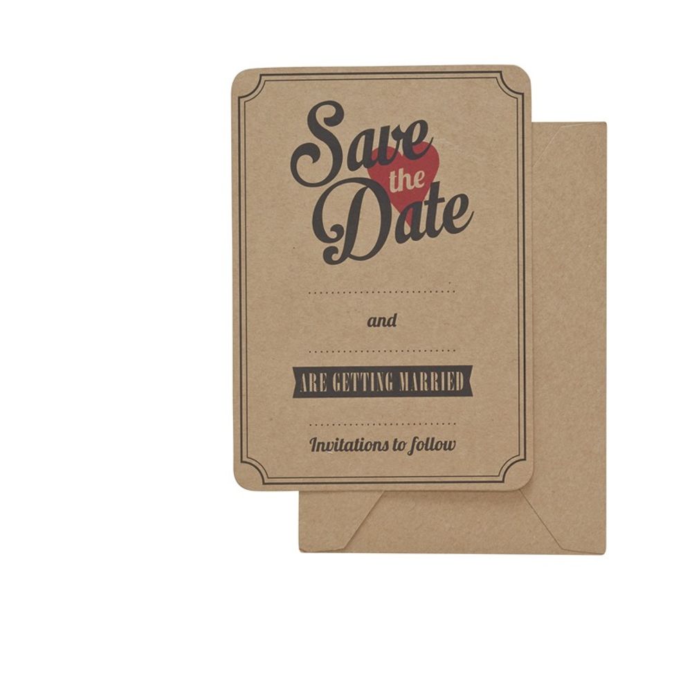 These cleverly designed cards are to make sure all those important people in your life set aside the date for your big day. In brown with vintage style writing, they allow for you to hand write all the personal details.