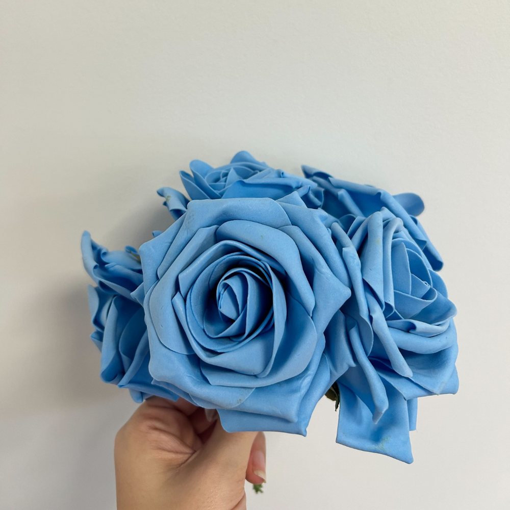 Our beautiful China blue open foam tea roses can be separated for singular use or kept as a bunch.