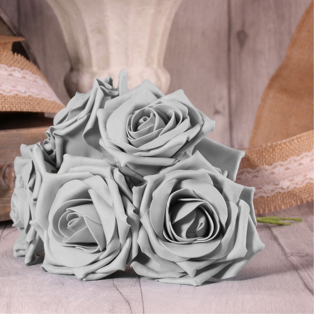 This beautiful grey open foam tea roses can be separated for singular use or kept as a bunch.
