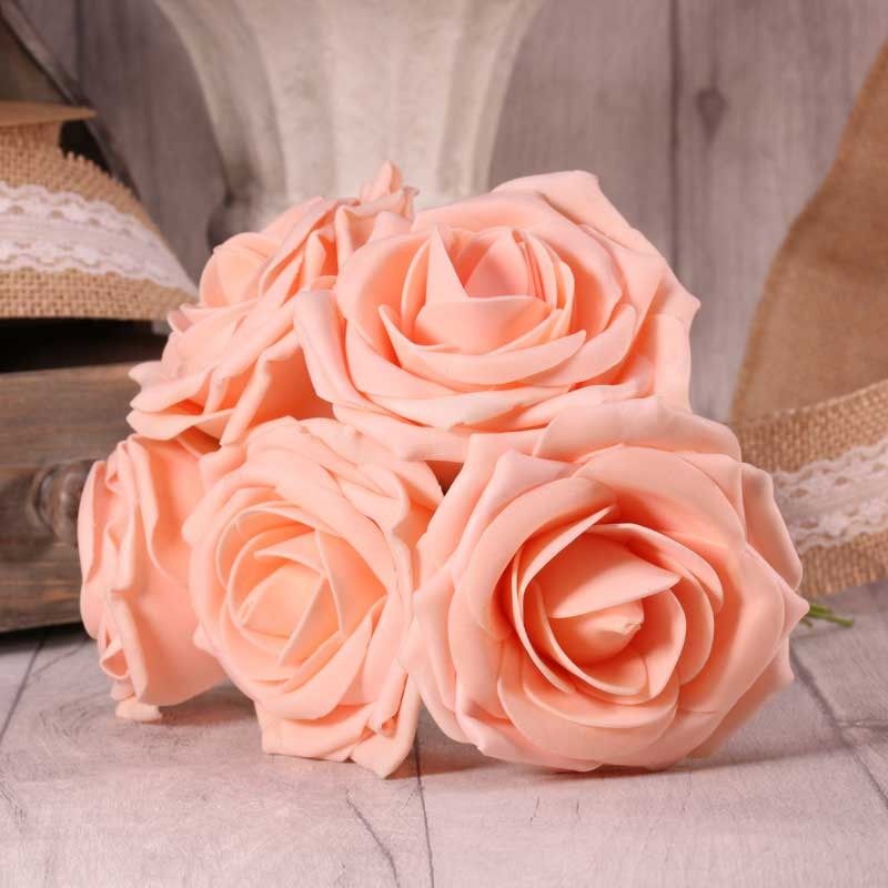 Our beautiful soft peach open foam tea roses can be separated for singular use or kept as a bunch.
