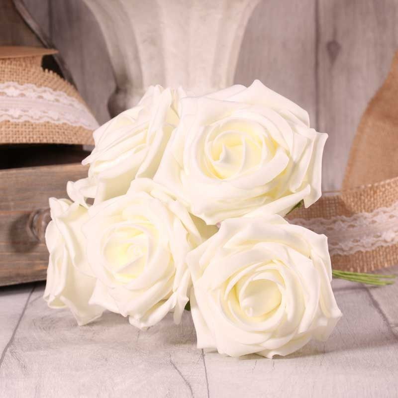 Our beautiful white open foam tea roses can be separated for singular use or kept as a bunch.