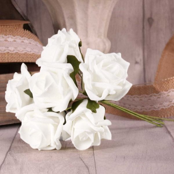 Our beautiful bright white foam tea roses can be separated for singular use or kept as a bunch.