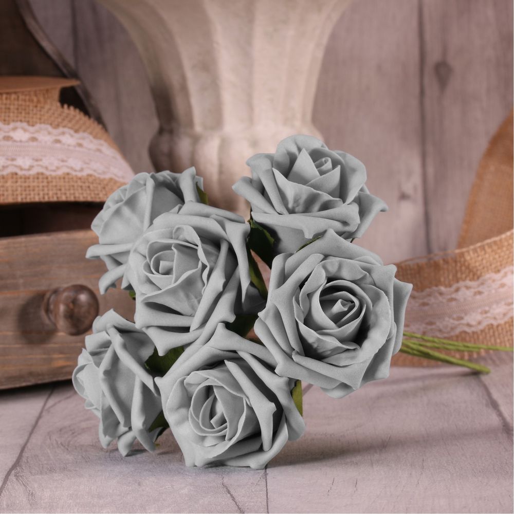 Bunch of 6 Grey Foam Tea Rose