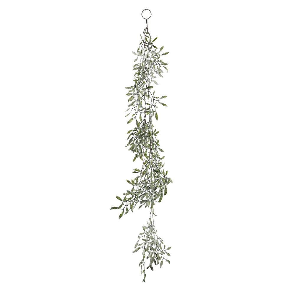Bring festive charm to your holiday décor with this Green Frosted Mistletoe Cascade, measuring 120cm. This cascading arrangement features lush green mistletoe leaves, beautifully accented with a delicate frosted finish, creating the look of a snow-dusted winter wonderland. Perfect for hanging in doorways, draping over mantels, or as a statement piece in your seasonal displays, its flowing design adds elegance and natural beauty to any setting. The flexible stem allows for effortless styling, while the frosted detail enhances its festive appeal. Ideal for Christmas and winter-themed décor, this cascade evokes the spirit of the season with timeless grace and charm.