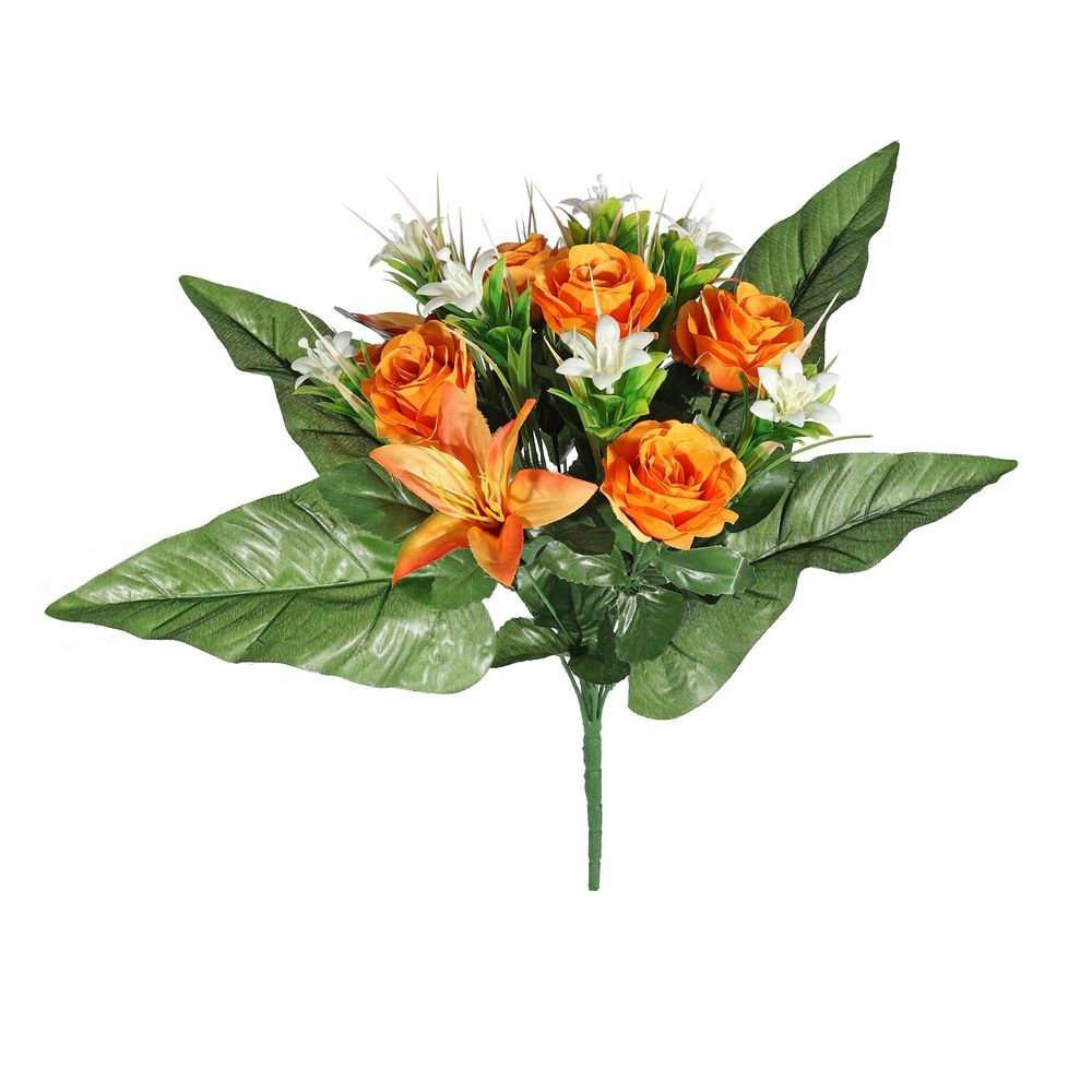 Introducing the Orange Pembroke Starflower Mixed Posy – your new go-to for making any room, event or occasion feel like a special affair. A unique combo of orange starflowers and artificial foliage come together to create a bold and beautiful arrangement perfect for introducing a vibrant splash of summertime into any otherwise dull setting.