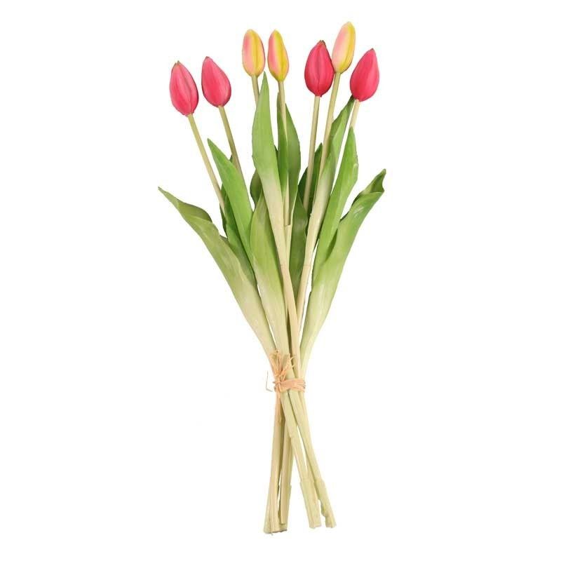 This tulip bunch comes in hot pink and as they are such lovely flowers they look nice on their own in a clear glass vase. They make a great addition to any room. The detail on them makes them look very realistic and due to them being silk they will never wilt so they can last forever keeping your displays always looking fresh.