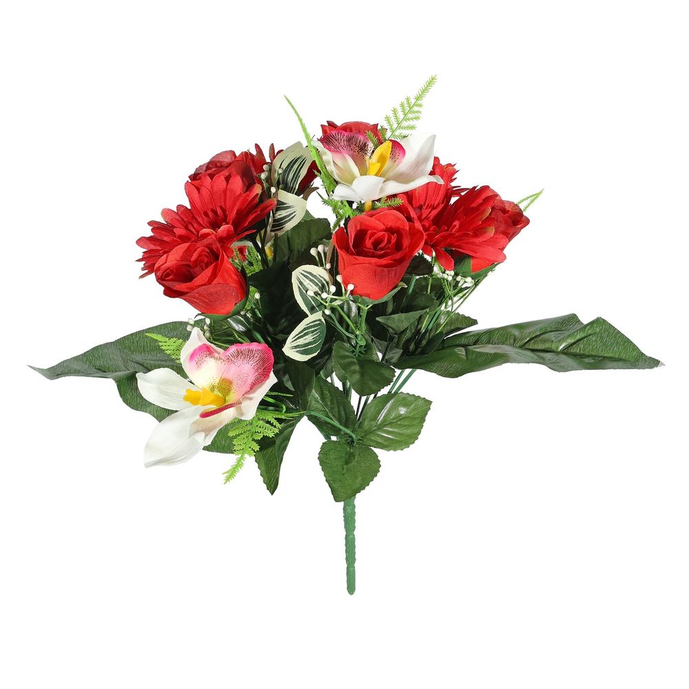 With its various hues, these glistening flowers will add just the right touch of vibrancy to any space. The manmade fabric makes it resistant to fading - so you can use it season after season! Bring warmth and life into any home today with this magnificent red artificial flower bunch!