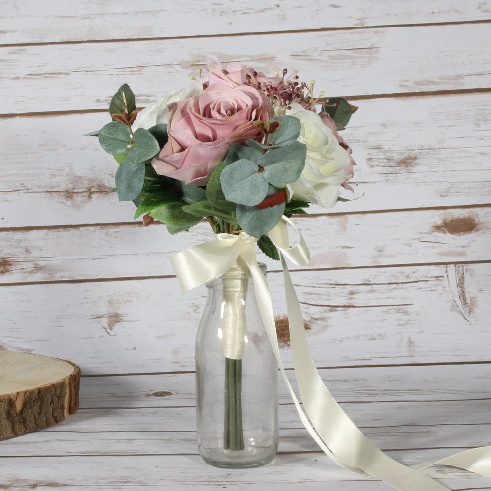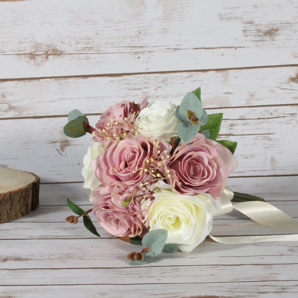 A stunning, handcrafted bouquet created with realistic silk flowers of the highest quality. The bouquet is approximately 21cm across and portrays a rustic elegance, ideal for a wide range of themes and colour pallettes.