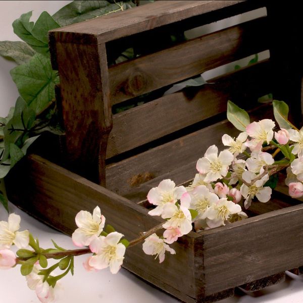 This lovely pearl cherry blossom comes in cream/pink. It is a beautiful silk flower that features open heads with complimenting foliage.