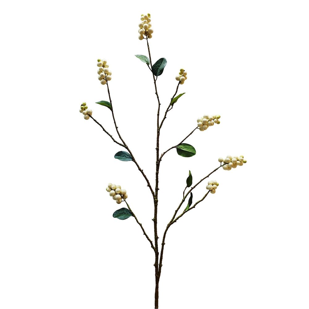 This elegant artificial stem features delicate branching with small berry clusters and soft green leaves, creating a light and organic look inspired by winter berry foliage.