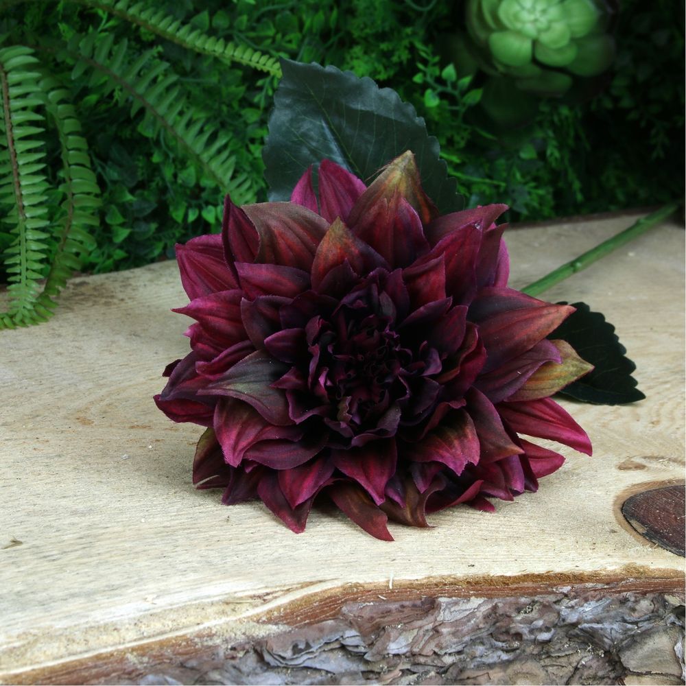 This Dahlia spray in burgundy is perfect for a lasting flower vase display at home. Use these to style your event with a floral look or incorporate within your crafting projects.