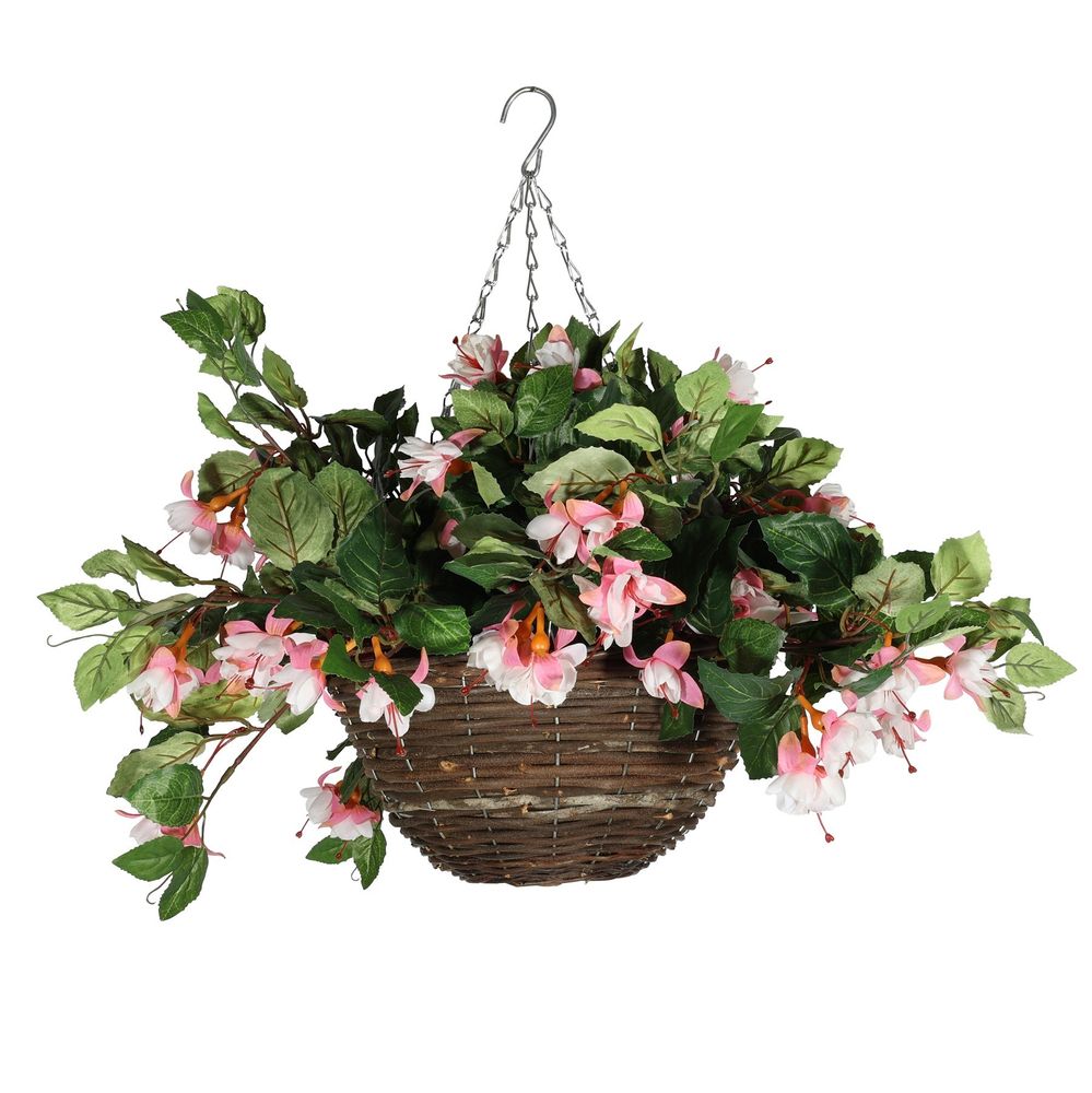 Brighten up your garden or indoor space with this enchanting artificial fuchsia hanging basket. Featuring realistic silk flowers, this hanging basket is the ideal way to introduce a vibrant splash of colour to any setting without the hassle of maintenance. Suitable for any weather, the high-quality materials ensure longevity and durability, providing an everlasting bloom that looks freshly-picked every day. Perfect for adding a touch of elegance to patios, balconies, or living rooms with none of the upkeep required for real plants. Enjoy the beauty of nature minus the need for watering or sunlight.