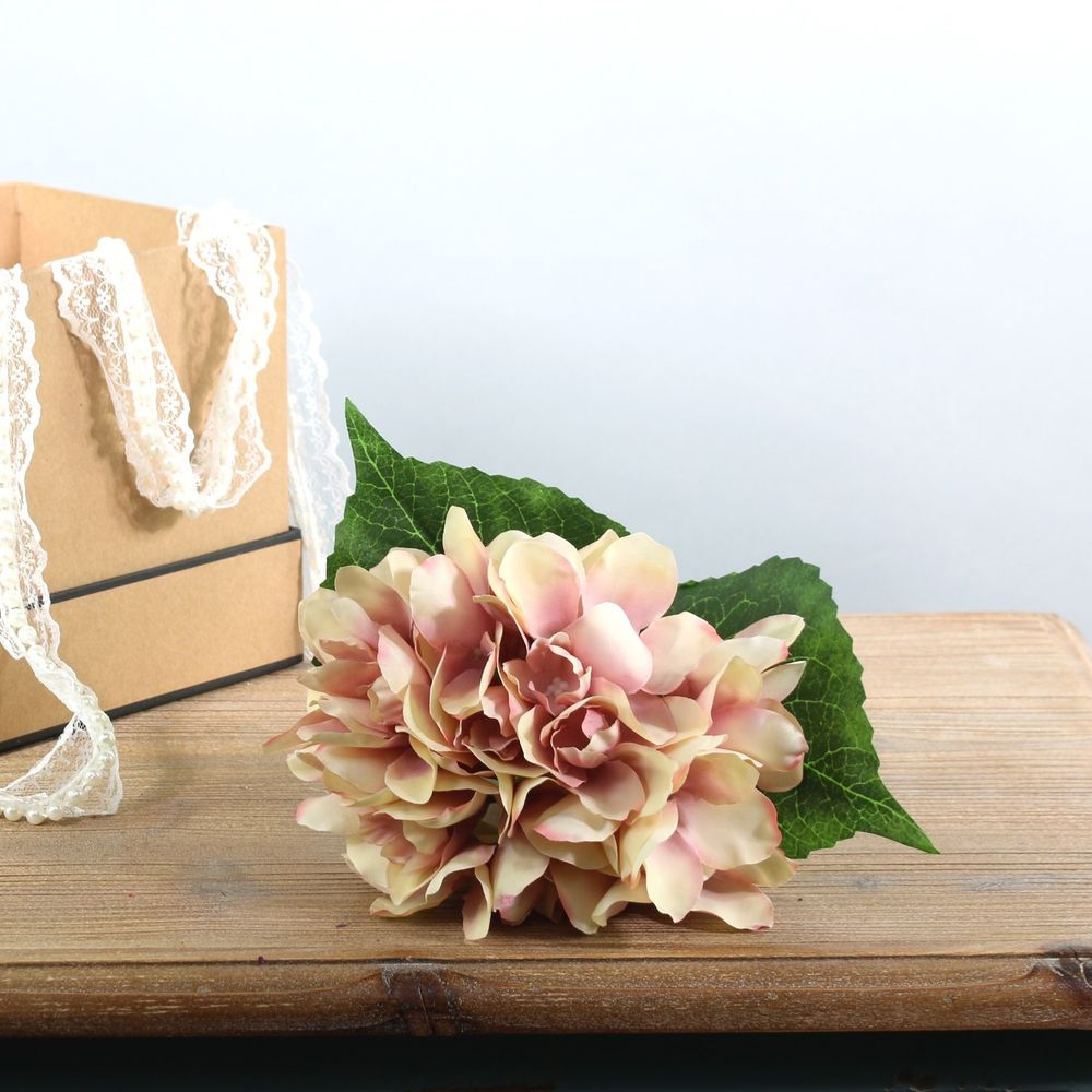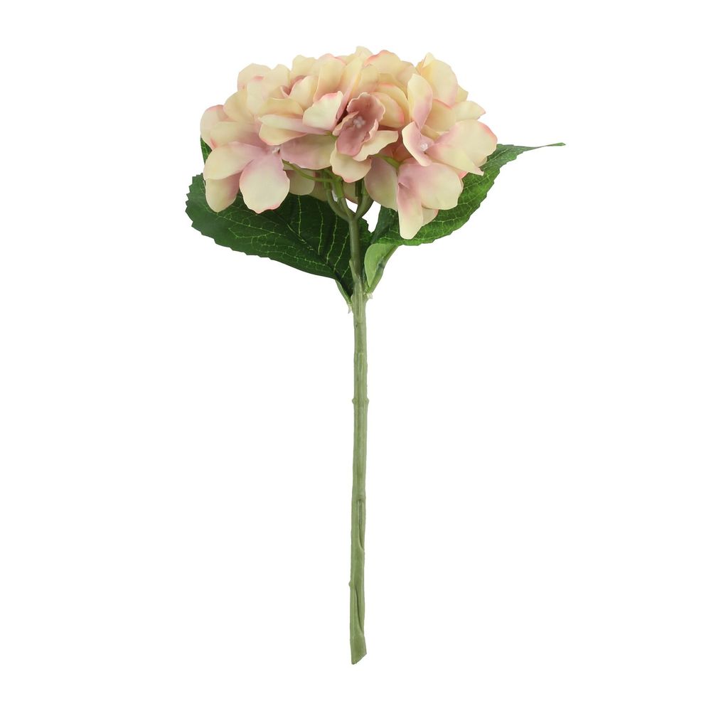 A beautiful cream pink hydrangea artificial flower stem. Add these to vases for an arrangement to display at home or for your event tables.