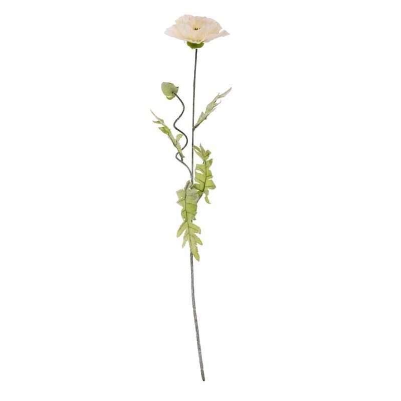 A beautiful large cream poppy, with a cream flower at the top and green stem and leaves.