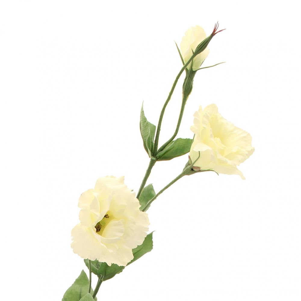 A beautiful cream Lisianthus spray, this silk features three open flowers with complimenting foliage.