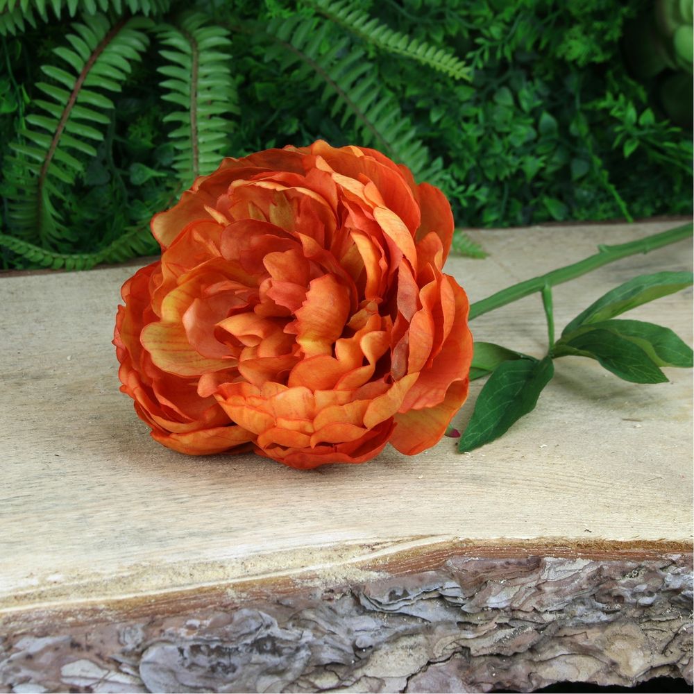 A single stem, this silk features one open fluffy head in orange and finished with complimenting foliage.