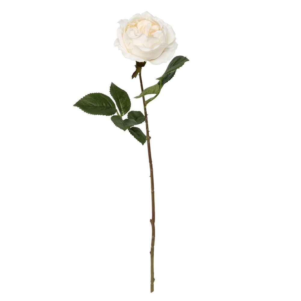A single stem, this silk features one open fluffy head in rich cream, with complimenting foliage.