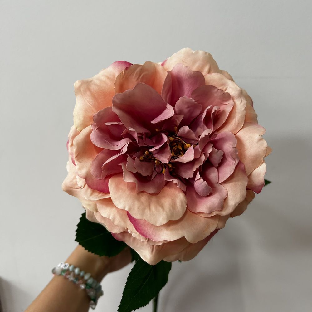 A single stem, this silk features one open fluffy head in a pink colour and finished with complimenting foliage.