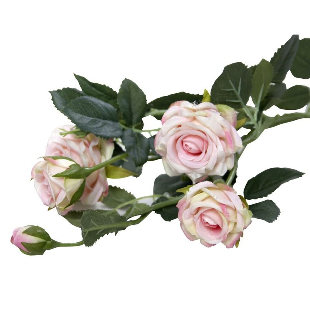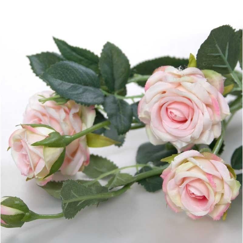 A beautiful rose spray, this highly detailed delicate silk spray features four open heads and one closed bud, with complimenting foliage