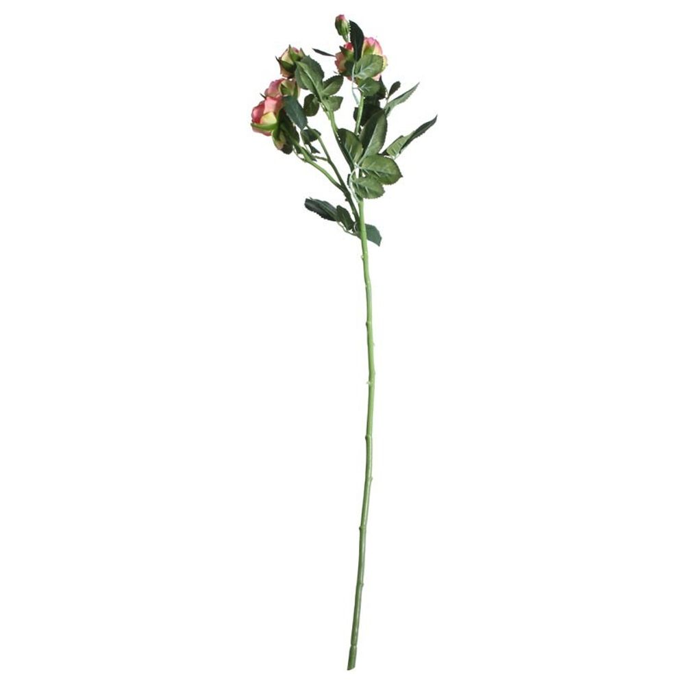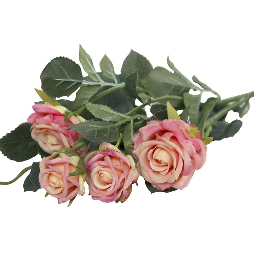 A beautiful rose spray, this highly detailed delicate silk spray features four open heads and one closed bud, with complimenting foliage