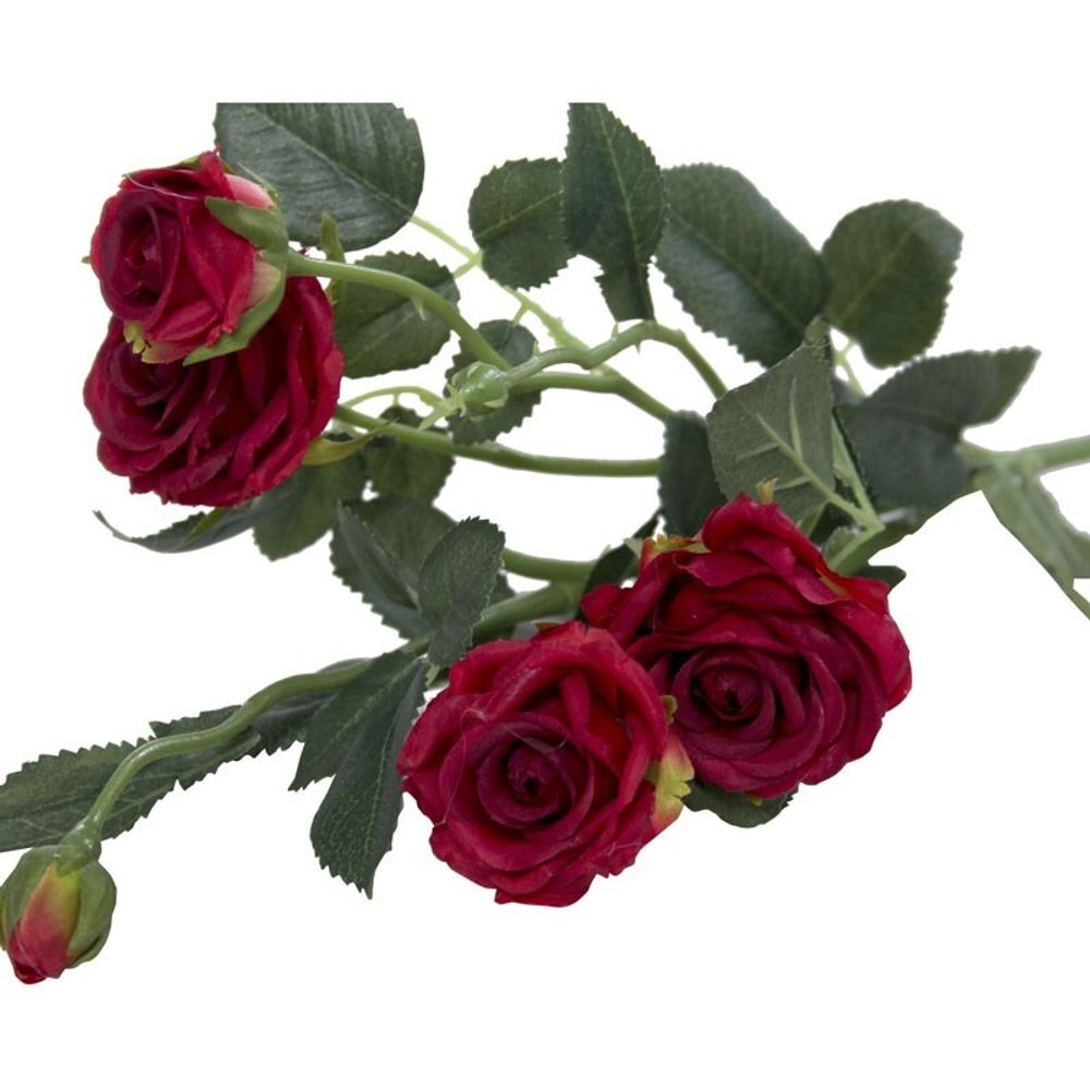 A beautiful rose spray, this highly detailed delicate silk spray features four open heads and one closed bud, with complimenting foliage