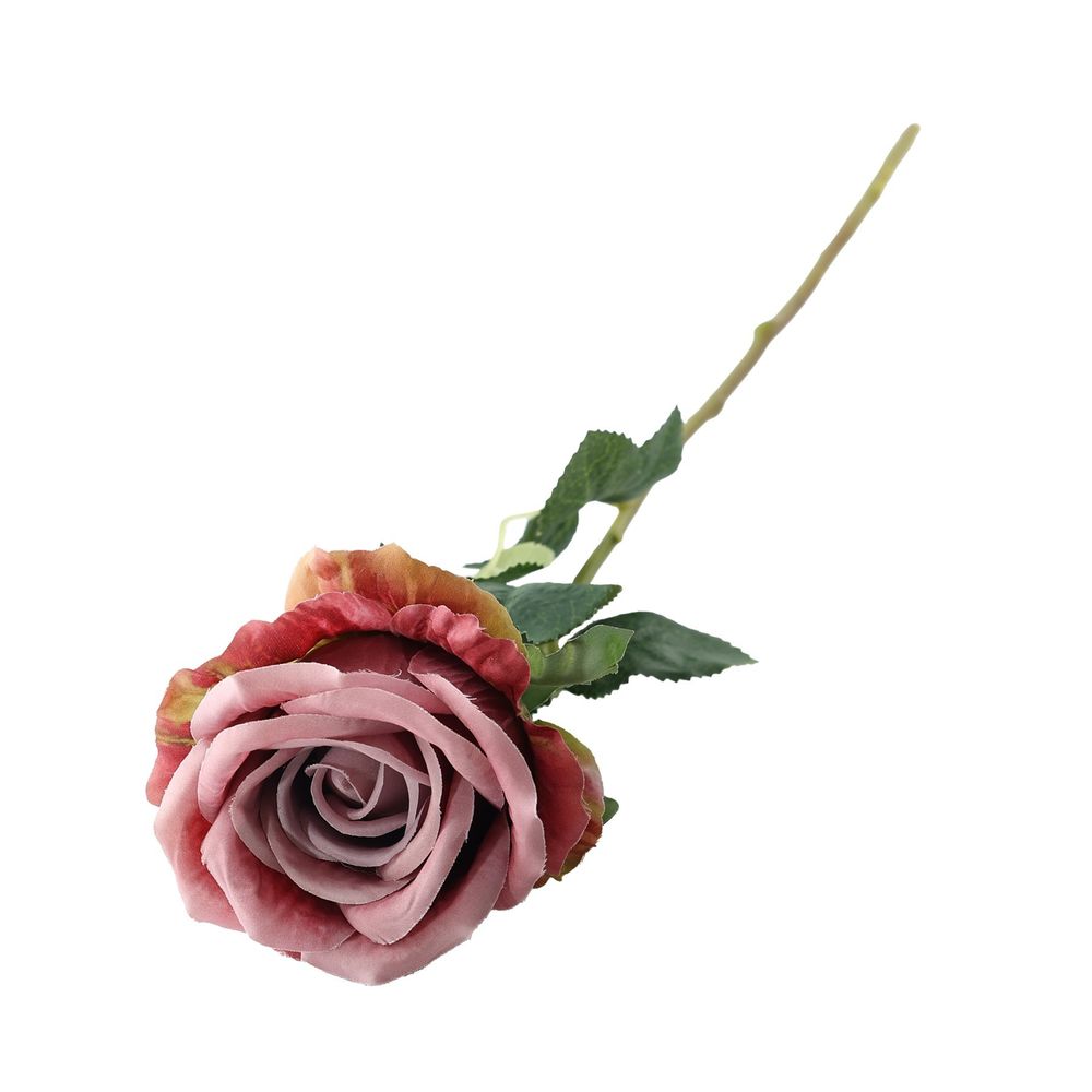 Its muted rose tone and realistic form make it ideal for vintage-inspired arrangements or modern rustic styling. It adds just the right hint of drama.