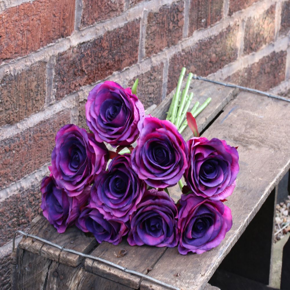 This rose bundle comes dark purple. The detail on them makes them look very realistic. A classic favorite, which can be used as a filler for floral arrangements or kept alone. Simply place into a clear glass vase for a great display which can also be used for centrepieces.