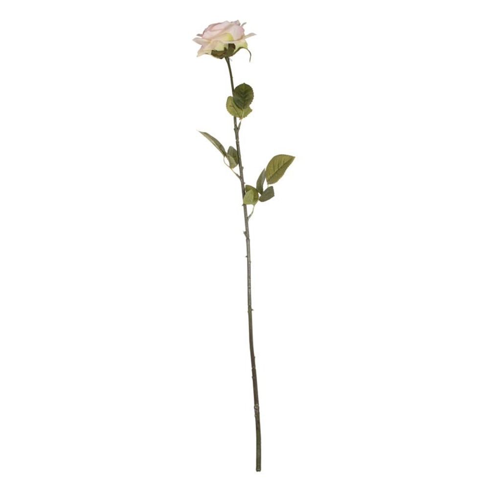 A pretty single stem, featuring one open rose head in blush pink with graduating foliage up the stem