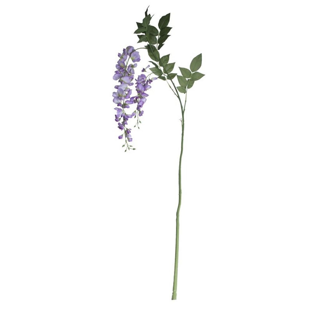 A charming wisteria spray, featuring clusters of lilac flowers with graduating foliage up the stem