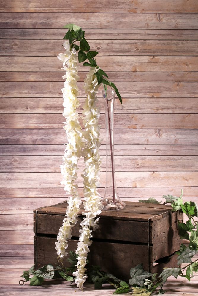 A charming wisteria spray, featuring clusters of cream flowers with graduating foliage up the stem