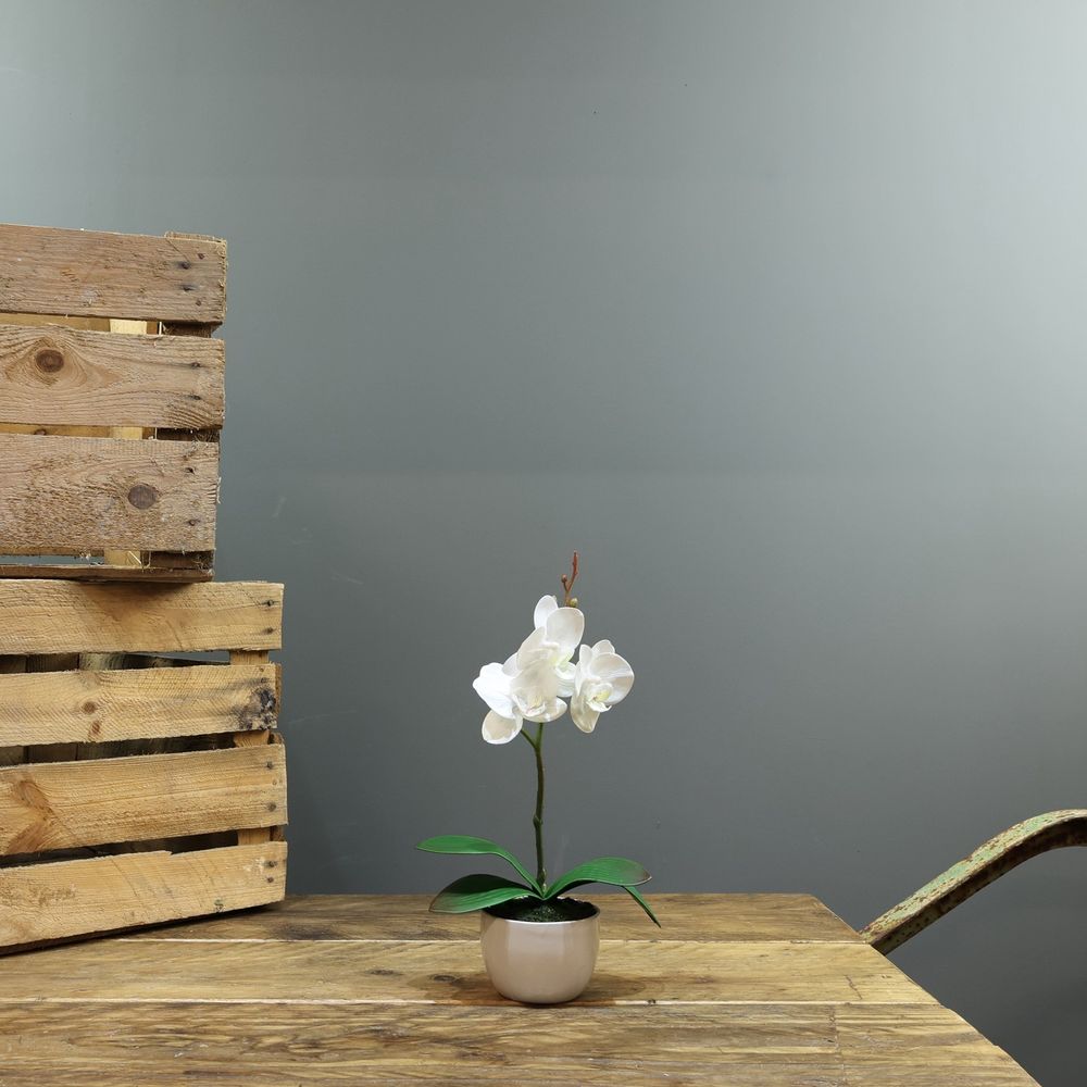 Artificial White Aragon Phalaenopsis in Planter (Medium - 1 Stem)