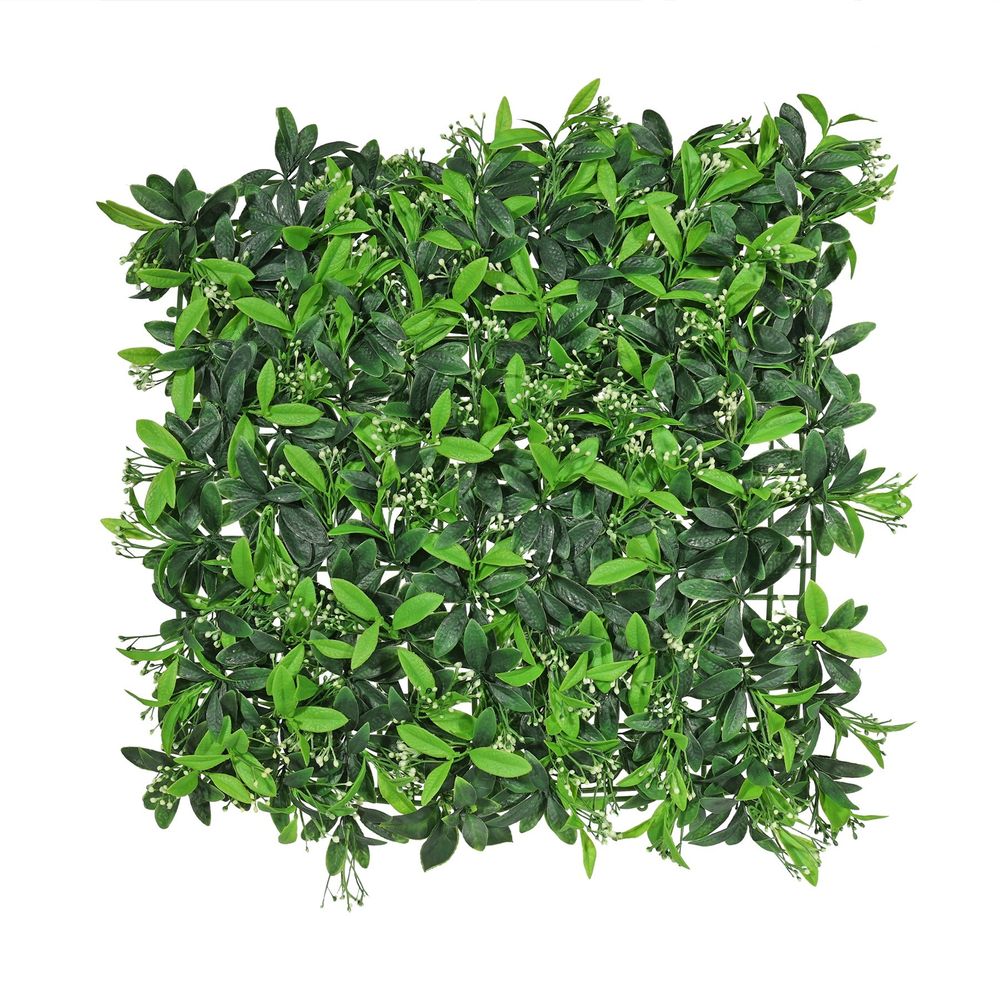 Transform your home's exterior with the Exterior U.V Osmanthus Leaf Green Wall Panel! Crafted from specialized silk greenery, this artificial greenery wall panel offers a sprawling backdrop of eye-catching Osmanthus leaves for you to enjoy. Interested in creating a breathtaking entryway for guests? This panel is the perfect way to make a daring first impression as visitors step through your door. Withstanding harsh outdoor conditions and long-term U.V exposure, this textured and vibrant wall panel also adds protection to your home while adding charm! Make your outdoor space beautiful - few things are more rewarding than creative self-expression with the fun and unique Exterior U.V Osmanthus Leaf Green Wall Panel!