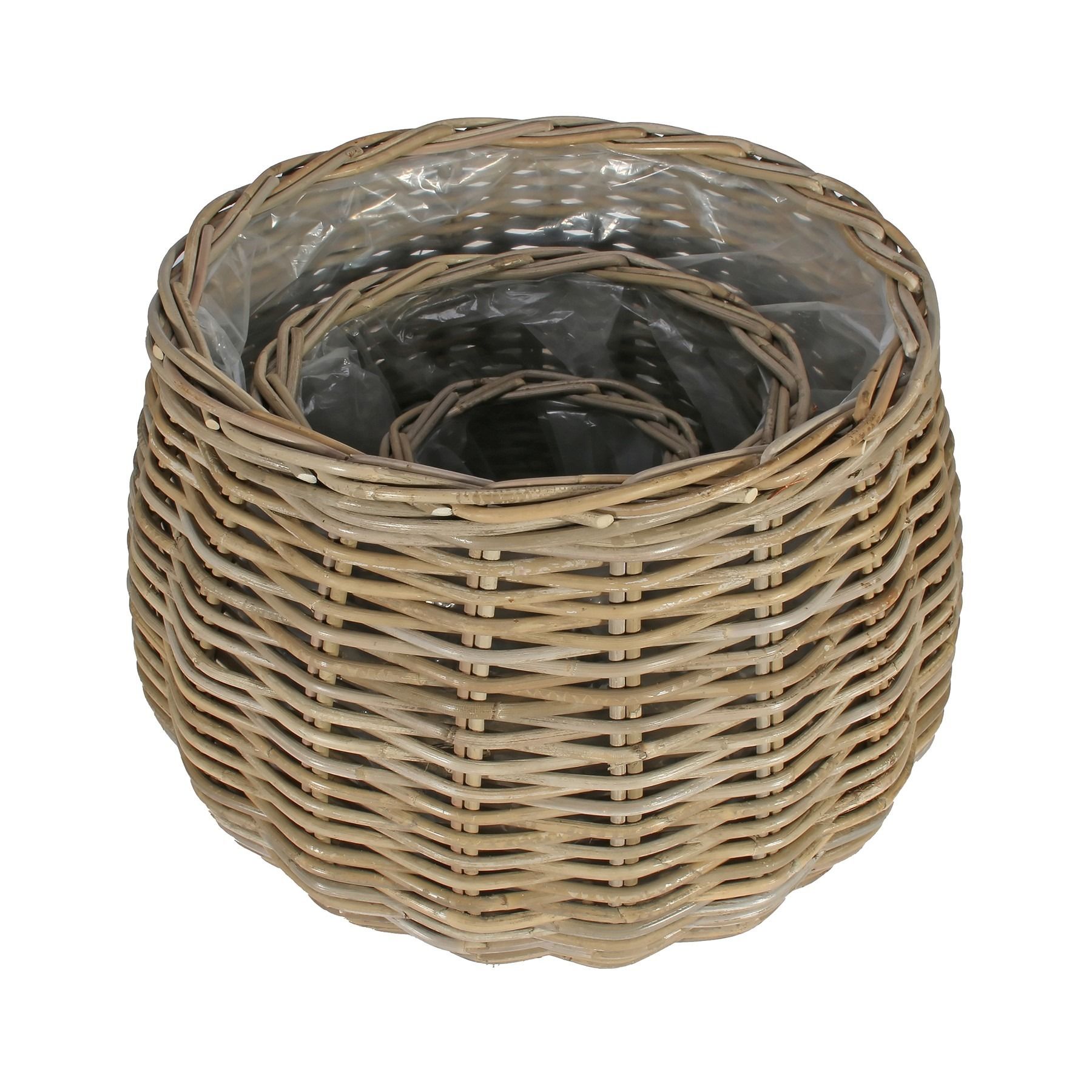 Come complete with plastic liners, making them suitable for using as a planter or for floral displays.