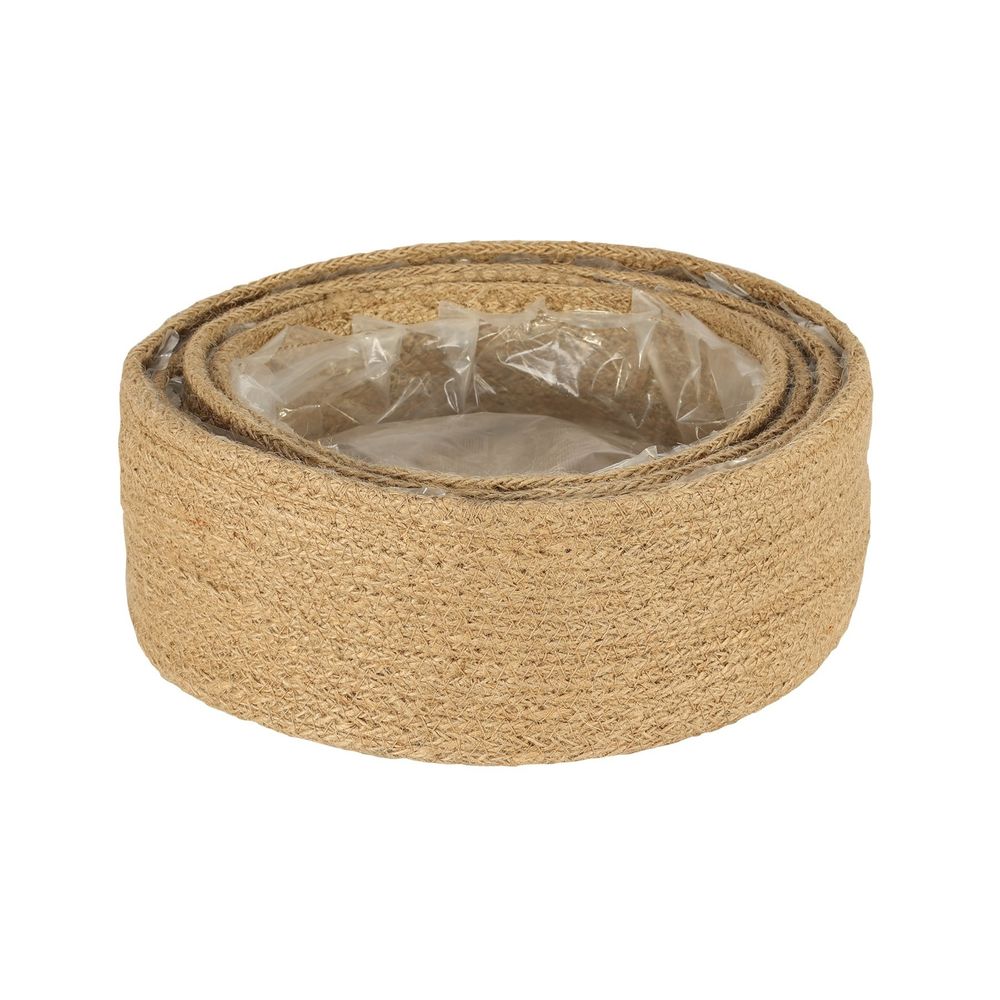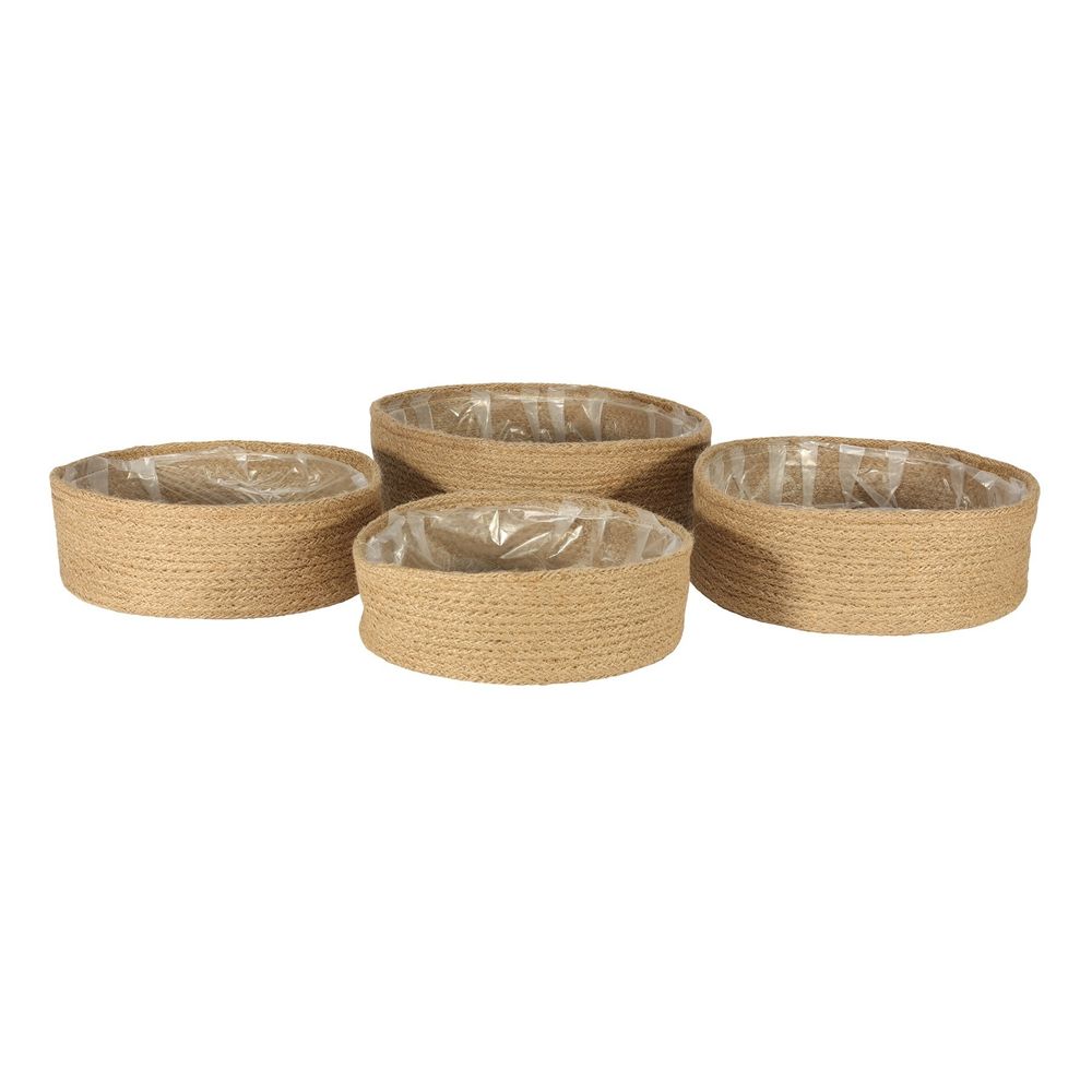 A set of 4 Jute braided rope baskets with inner liner ideal for plotted plants and flowers. The inner liner ensures that any moisture or water stays within the container.
