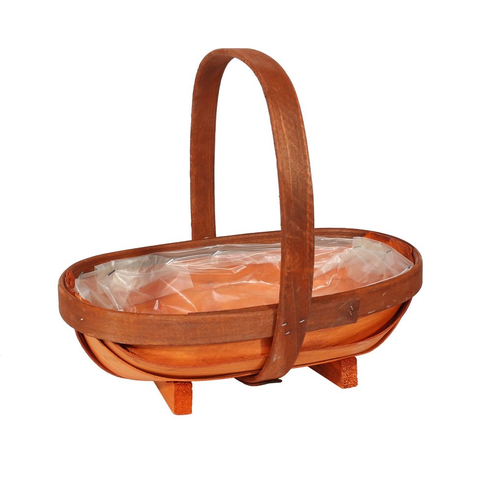 Each trug comes with a plastic liner inside to help for decorative needs, the basket is finished with a light stain to highlight the natural grain of the wood