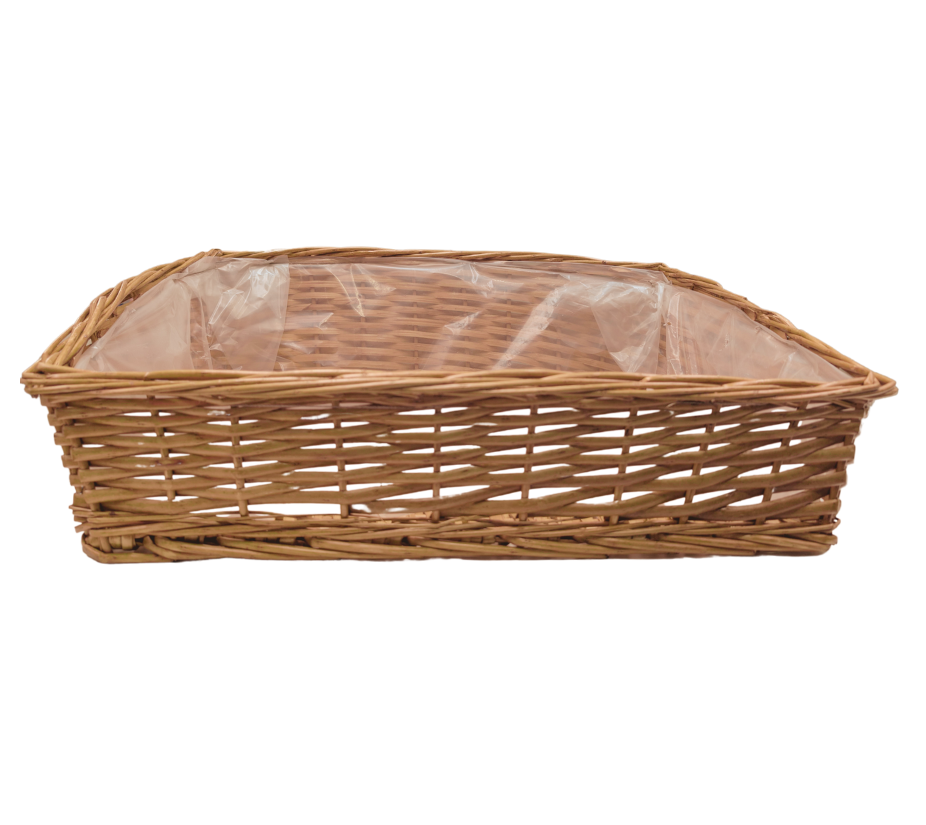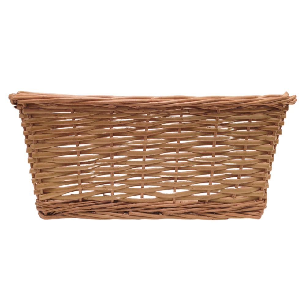 This traditional style basket would make a great display basket for floral arrangements, fruit displays or as a hamper filled with gifts because of its sloped design.