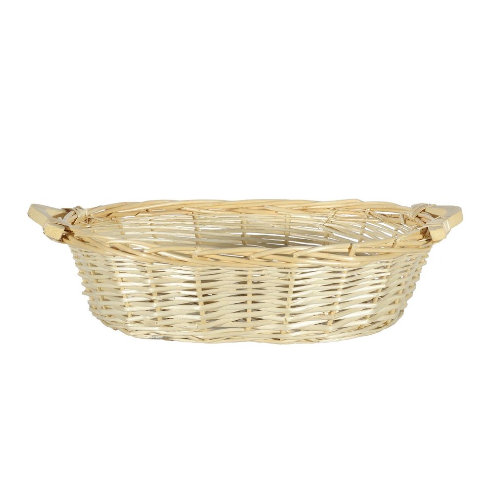 44cm wide naturally light coloured willow oval tray basket with side handles.